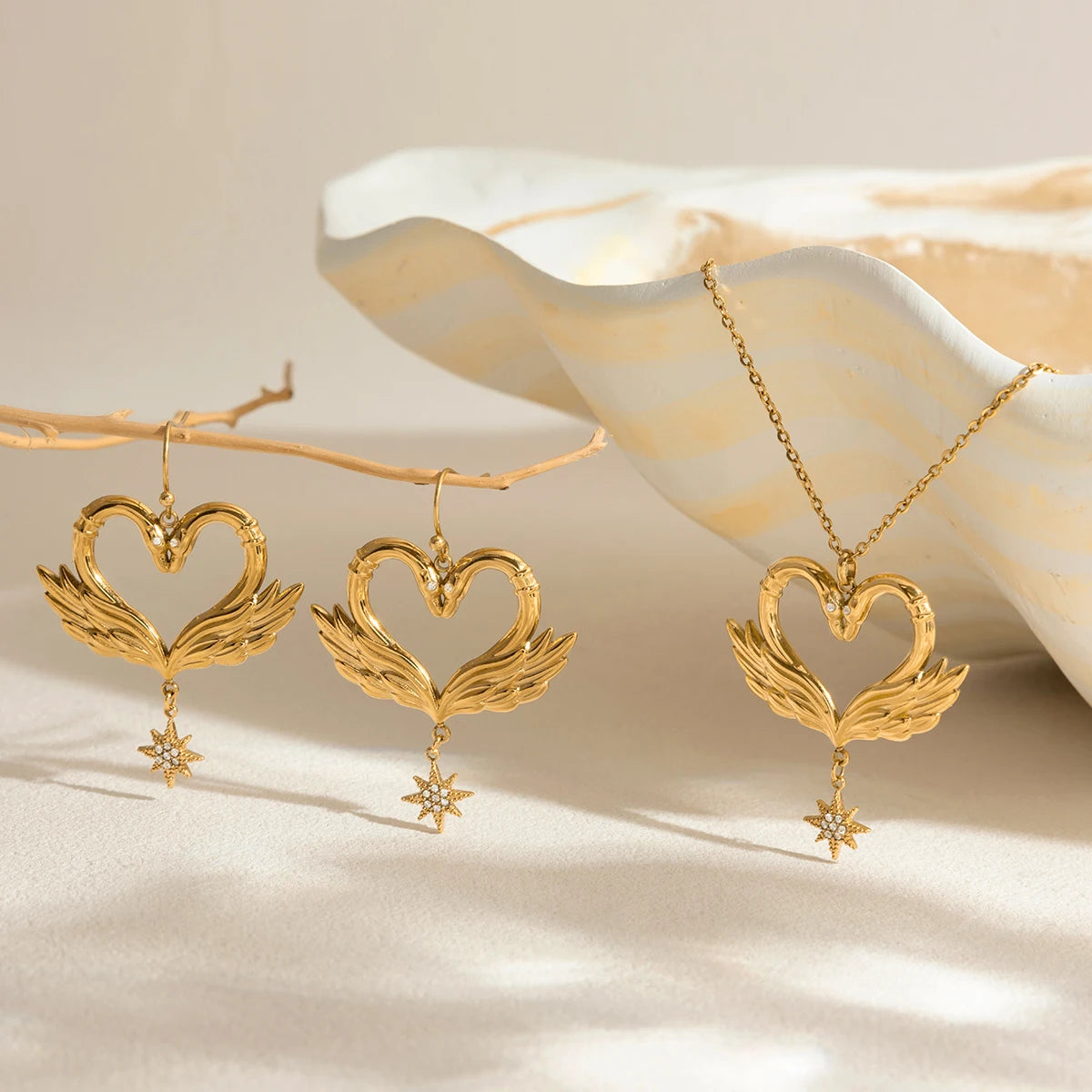 Embrace timeless elegance with this romantic swan necklace and earrings set that brings graceful sophistication to any occasion. Featuring delicate swan pendants that symbolize love and beauty, this coordinated set is perfect for creating a polished, put-together look whether you're celebrating a special moment or elevating your everyday style with effortless charm.