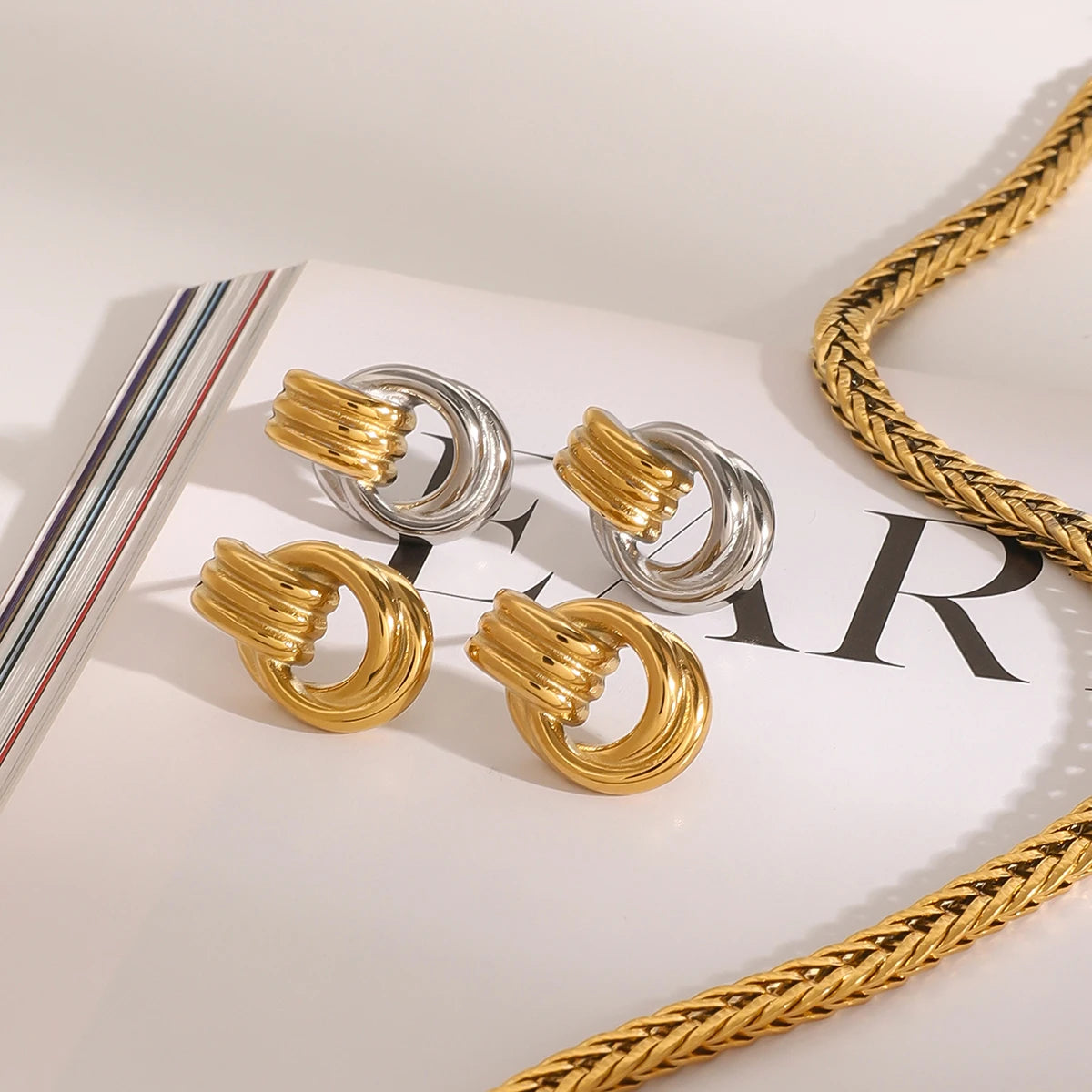 Elevate your everyday style with these stunning wrap knot gold & two-tone earrings that perfectly balance modern minimalism with timeless elegance. The delicate knot design creates a captivating textural detail, while the classic stud style adds sophisticated versatility to any outfit.