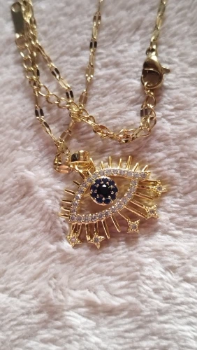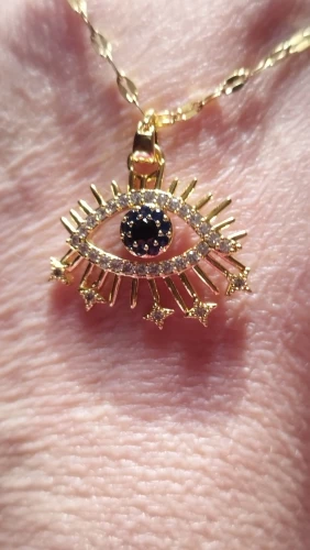 Elegant gold chain necklace featuring ancient Egyptian eye symbol with zirconia detailing