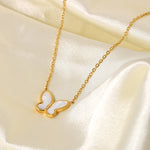 Embrace nature's beauty with this enchanting shell butterfly pendant necklace featuring an iridescent butterfly charm. The delicate shell material catches the light with stunning rainbow hues, creating a whimsical and feminine piece that adds a touch of magic to any outfit. Perfect for everyday elegance or special occasions.